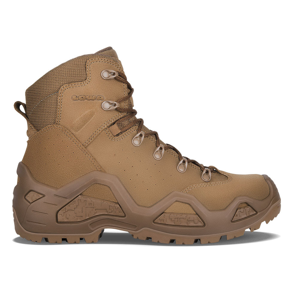 Our proven Z-6S has been certified to comply with EU PPE regulations and has been updated with the LOWA® Tactical Z Trac® outsole that meets the SRA standard for slip resistance. It’s a rugged, multi-function boot that’s designed for demanding missions in warm, dry conditions while carrying heavy packs over varied terrain, and combines the walking comfort of a hiking boot with the support and protection of a hard duty, backpacking boot plus instep protection against rope abrasion while fast-roping. Lacing Hardware: Closed Metal Hooks & Fabric Loops. Safety Certifications: EN ISO 20347: 2012, meeting code 02 WR SRA F0 CI HI HRO