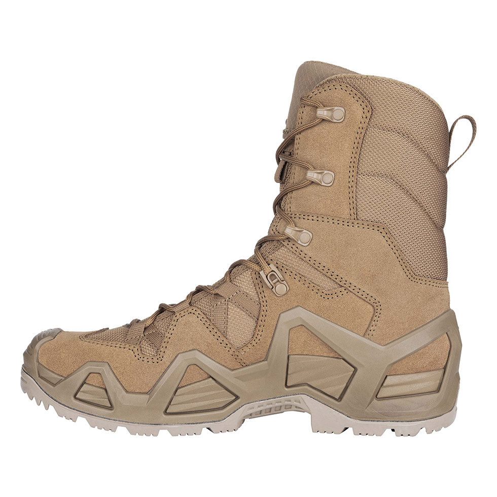 This updated version of the Zephyr Hi is stronger, more technical, more durable and even higher-performance than the original Zephyr Hi. Designed for warm weather missions in dry conditions, with standout features such as a dual-density PU midsole that insulates against heat & cold, tear-resistant, breathable split leather/Cordura® upper, a locking ankle eyelet, a lace holster, instep protection against rope abrasion while fast-roping, and a new slip, heat & fuel-oil resistant outsole. All in a tall shafted version for extra protection and support and EU PPE certified.