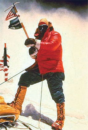 Jim Whittaker, the first American to summit Everest, does so in a pair of LOWA mountaineering boots.