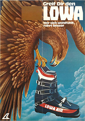 In its 50th year, LOWA shocks the ski boot world with the “Air” model, which uses an air-cushioned inner boot. This completely changes the way ski boots fit, and LOWA jumps to #1.